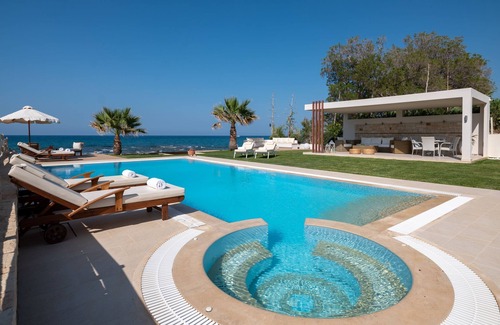 Unique beachfront location, heated pool with built-in hydromassage, large garden | Villa in Heraklion