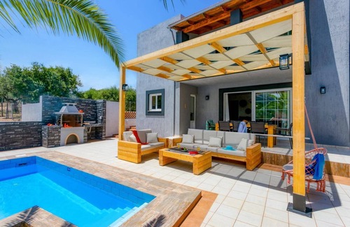 Villa Alpha is a wonderful, modern 4 bedroom villa within a 10 minute walk of the charming Old Hersonissos square and its selection of delicious restaurants and tavernas. Spend your days relaxing on the beautiful terrace or take a refreshing dip in your private swimming pool, all whilst enjoying the warmth of the Cretan sunshine. The covered terrace offers the perfect spot for al fresco dining, with views of the adjacent mountains. WiFi and air conditioning/ heating in the bedrooms and lounge are included.